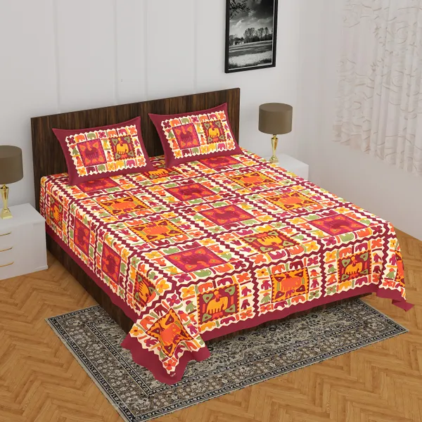 Maroon Hand Block Print Cotton Bedding Bed Sheet With 2 Pillow Cover