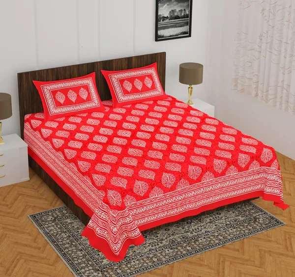 Ocean Red Handmade Floral King Patchwork Bedsheet 100% Cotton + 2 Shams