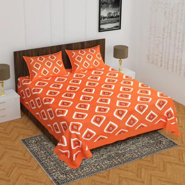 Orange Best Kaju Katli Print Luxury Jaipuri Pure Cotton Bedsheet With Hand..More