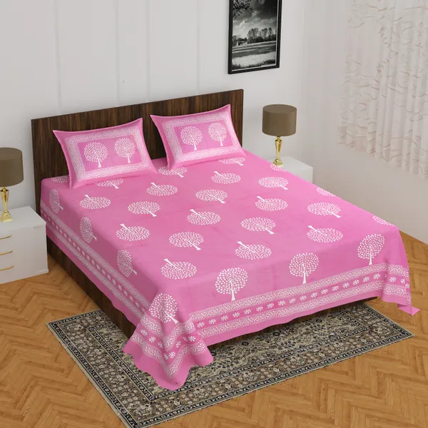 Pink Butta Luxury Jaipuri Pure Cotton Bedsheet With Handmade Sanganeri Prin..More