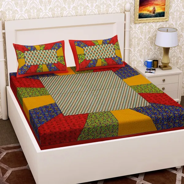 Red Luxury Jaipuri Pure Cotton Bedsheet With Handmade Sanganeri Print And T..More